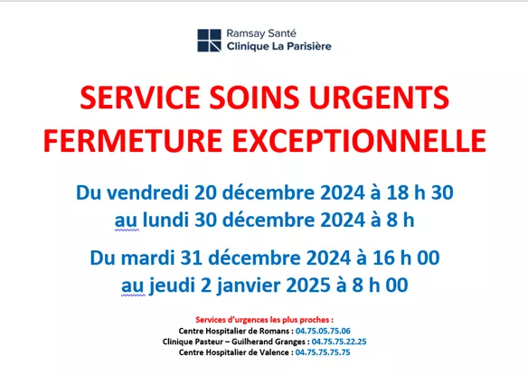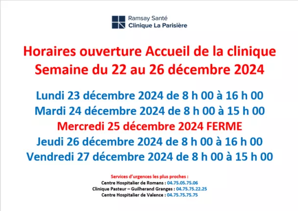 Du 20 décembre 2024 au 02 janvier 2025, nous adaptons nos horaires.